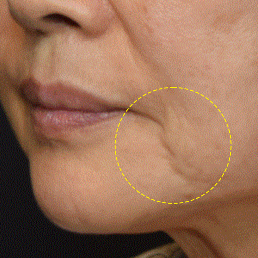 사진을 비교해보면 광대 아래부터 입가로 이어지던 처진 라인이 개선되었고, 전체적인 얼굴 실루엣이 더욱 또렷해지면서, 인상 자체가 한층 젊어 보이게 되었음을 확인할 수 있지요?