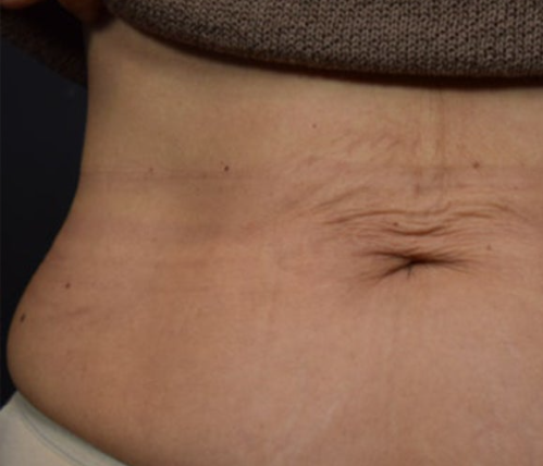 시술 전에는 복부 중심과 옆구리 부위가 무너진 듯 늘어진 인상이었지만, 시술 후에는 허리선이 보다 부드럽게 이어지며 옆구리 라인의 입체감이 회복된 것을 확인할 수 있습니다.
