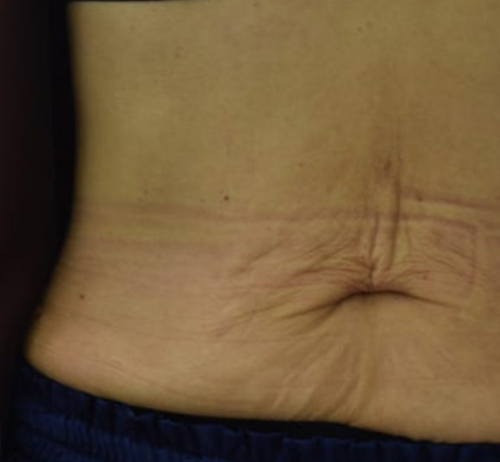 시술 전에는 복부 중심과 옆구리 부위가 무너진 듯 늘어진 인상이었지만, 시술 후에는 허리선이 보다 부드럽게 이어지며 옆구리 라인의 입체감이 회복된 것을 확인할 수 있습니다.