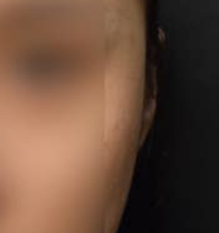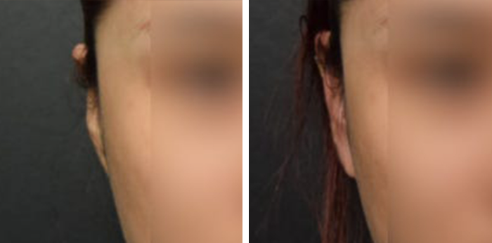 - 귀 중심부가 함몰되어 곡선 라인이 매끄럽지 않음