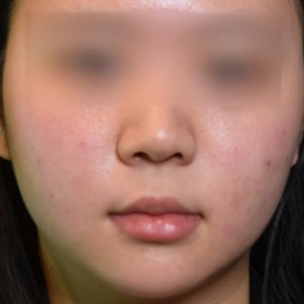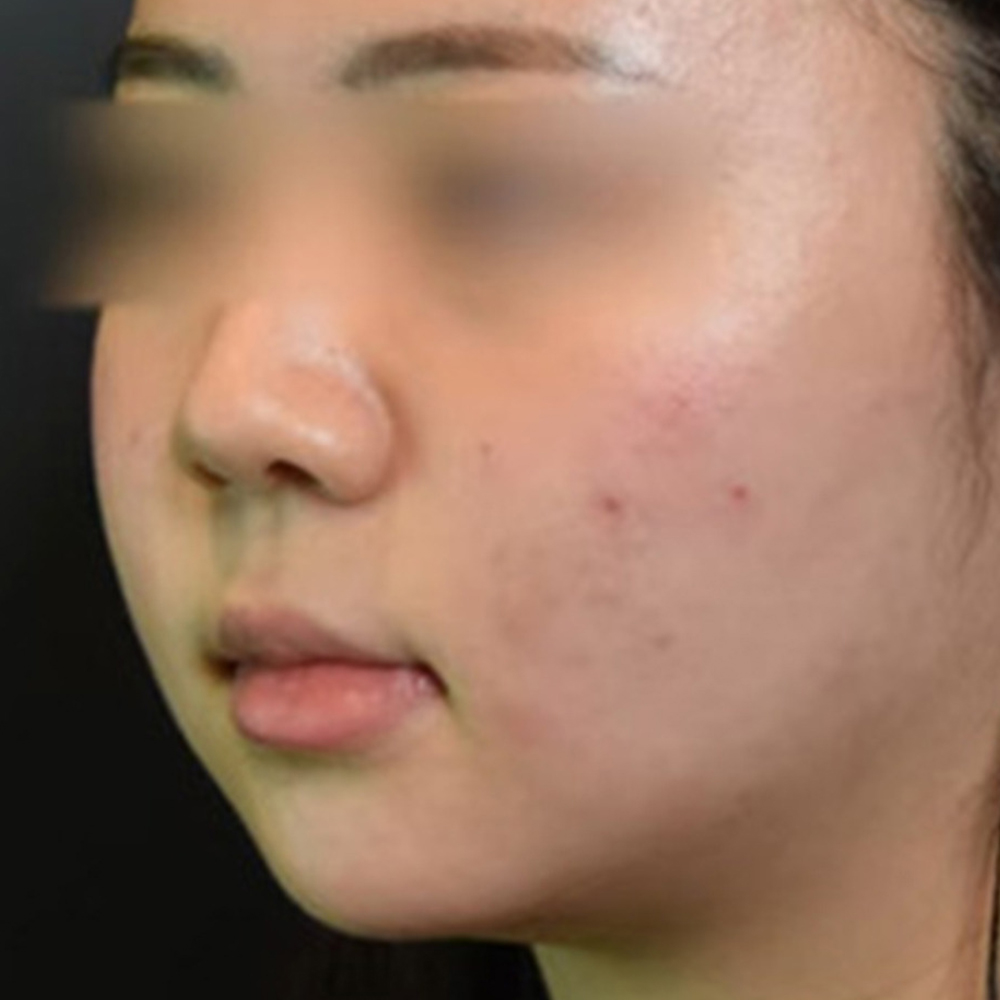 치료 전에는 여드름 자국의 붉은기가 뚜렷했고, 전체적으로 혈관 확장으로 인한 홍조가 도드라졌습니다.