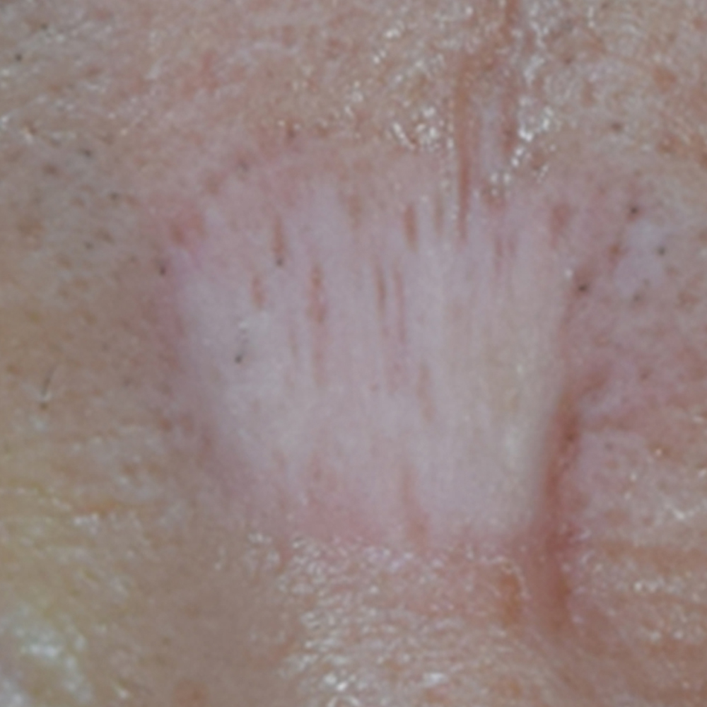사진에서 보이는 것처럼 흉터 부위는 피부색보다 더 하얗게 고착되어 있어, 빛이 닿으면 주변 피부와 대비가 더욱 뚜렷하게 드러나는 상태였습니다.