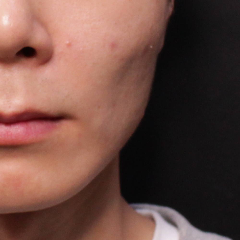 볼 부위 사진을 확대해보면, 시술 전에 비해서 음영이 크게 줄어들고 볼꺼짐 부위의 볼륨이 차오르고 있는 것을 자세하게 확인할 수 있습니다.