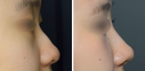 하지만 시술 후에는 콧대가 자연스럽게 높아지면서 코의 윤곽이 또렷하게 살아났고, 옆모습에서도 매끄럽고 입체감 있는 라인이 형성되었습니다.