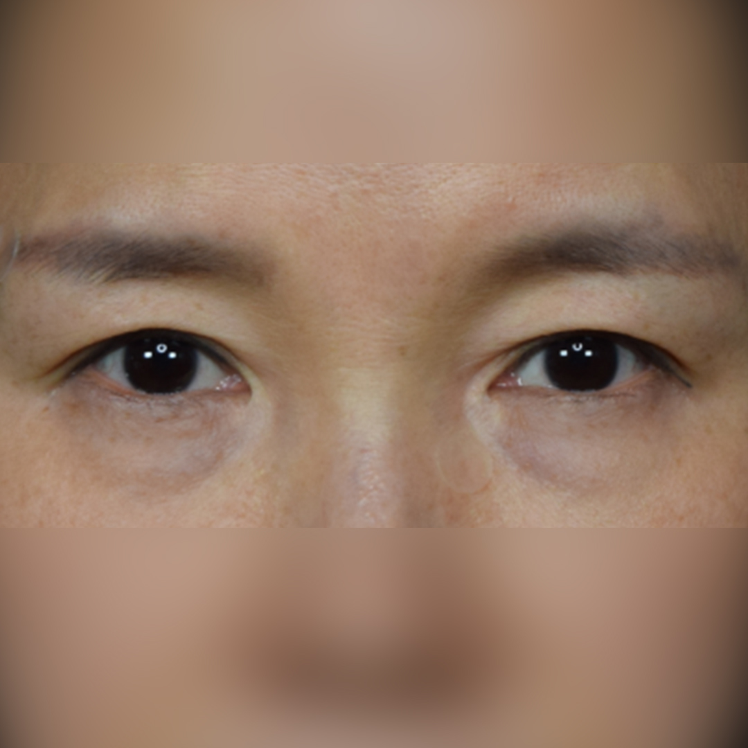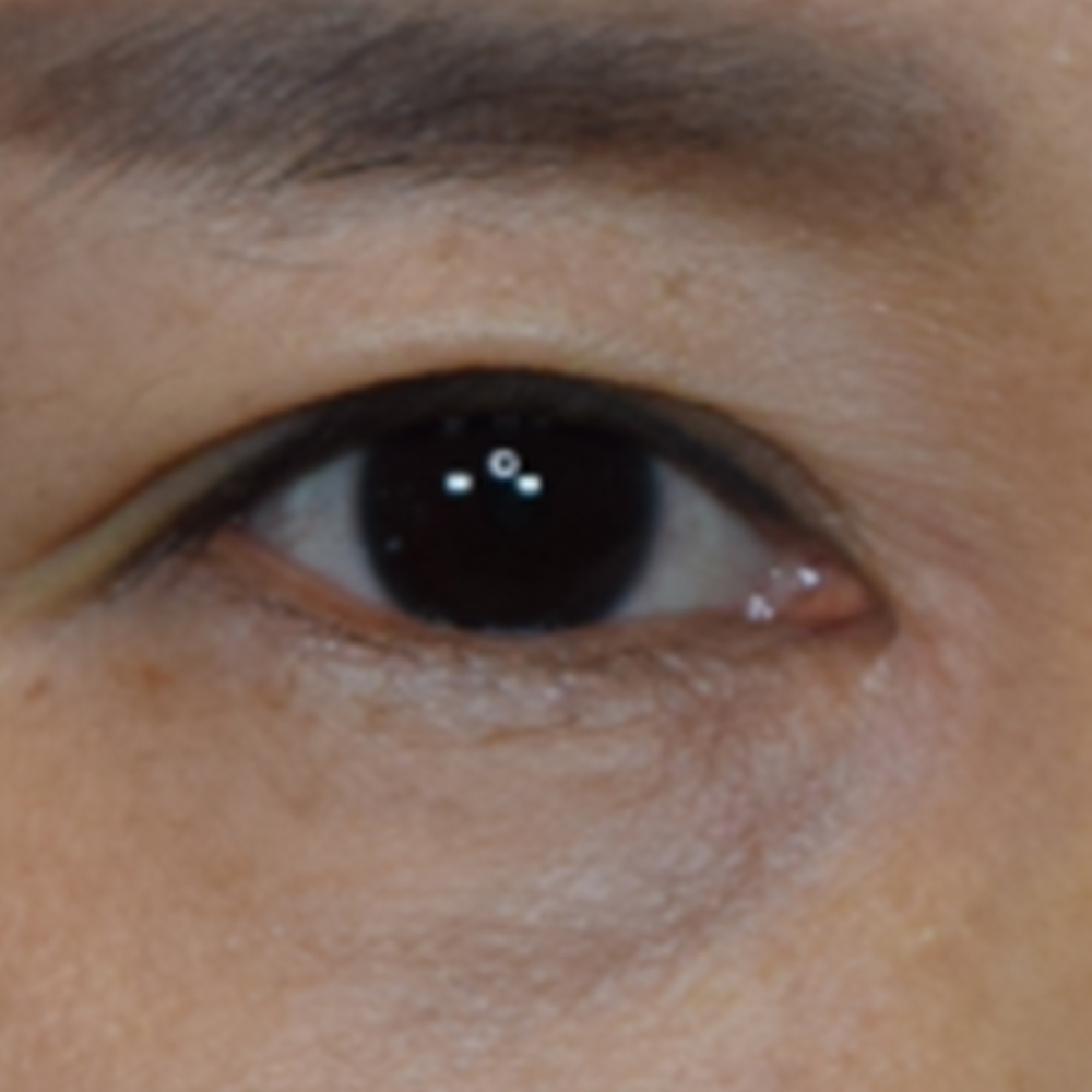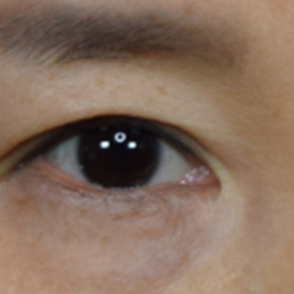 전체 얼굴에서는 티가 덜 나 보일 수 있지만, 눈을 확대해보면 몽고주름 주변으로 뚜렷하게 하얗게 변색된 흉터가 확인되었습니다.