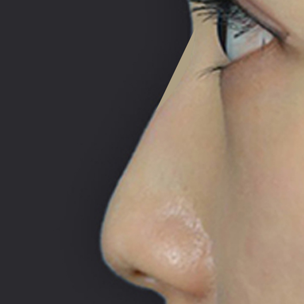 실제로 단순히 콧대 부분만 채운 사진을 연출해 보면, 개선된 듯 보이지만 어딘가 어색한 느낌을 받을 수 있습니다. 이런 경우 코끝까지 함께 디자인해야 훨씬 조화롭고 자연스러운 라인을 만들 수 있습니다.