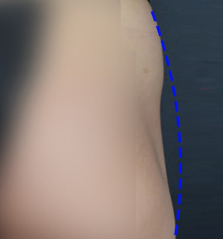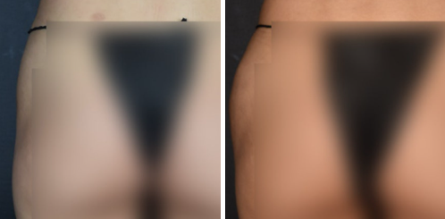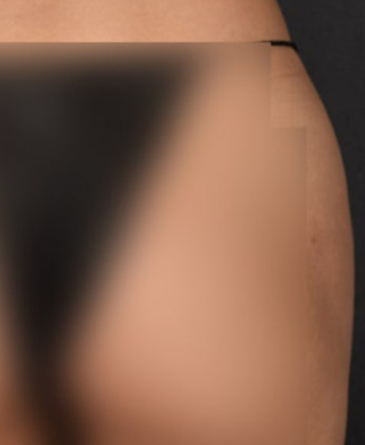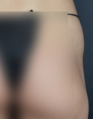 시술 후 모습을 보면, 좌우 비대칭이 완화되었고 꺼졌던 골반 라인이 매끄럽게 연결된 것을 확인할 수 있습니다.