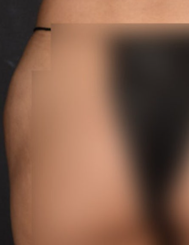 시술 후 모습을 보면, 좌우 비대칭이 완화되었고 꺼졌던 골반 라인이 매끄럽게 연결된 것을 확인할 수 있습니다.