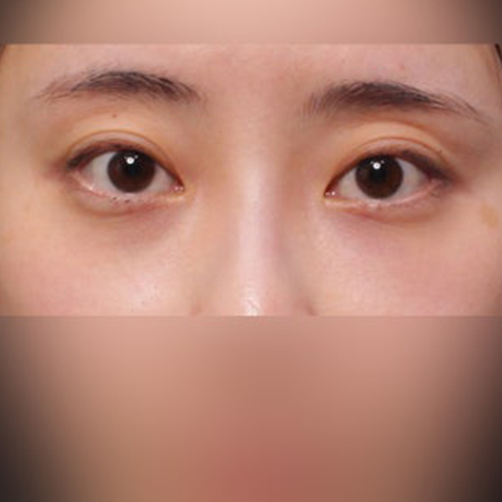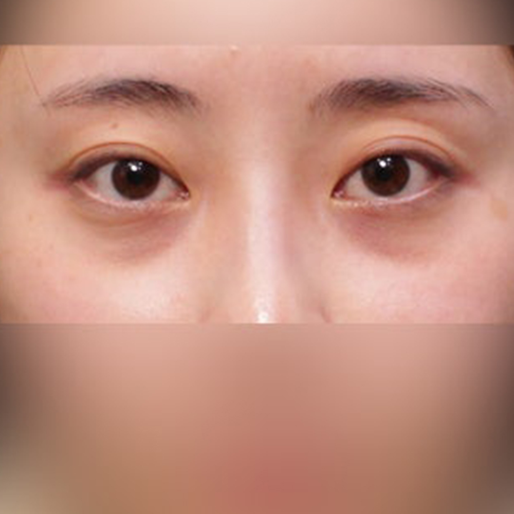 시술 후 눈밑의 꺼짐 부위가 자연스럽게 채워지면서 피부결이 정돈되고, 그림자 형태의 다크서클이 옅어진 모습이 보입니다.