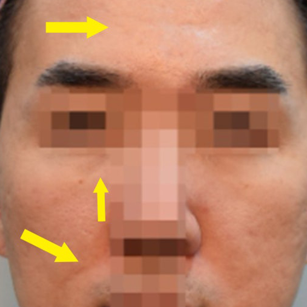 30대 남성 환자분으로, 피부 탄력이 전반적으로 떨어지고 곳곳에 꺼짐이 생기면서 피부 표면이 울퉁불퉁한 상태였습니다.