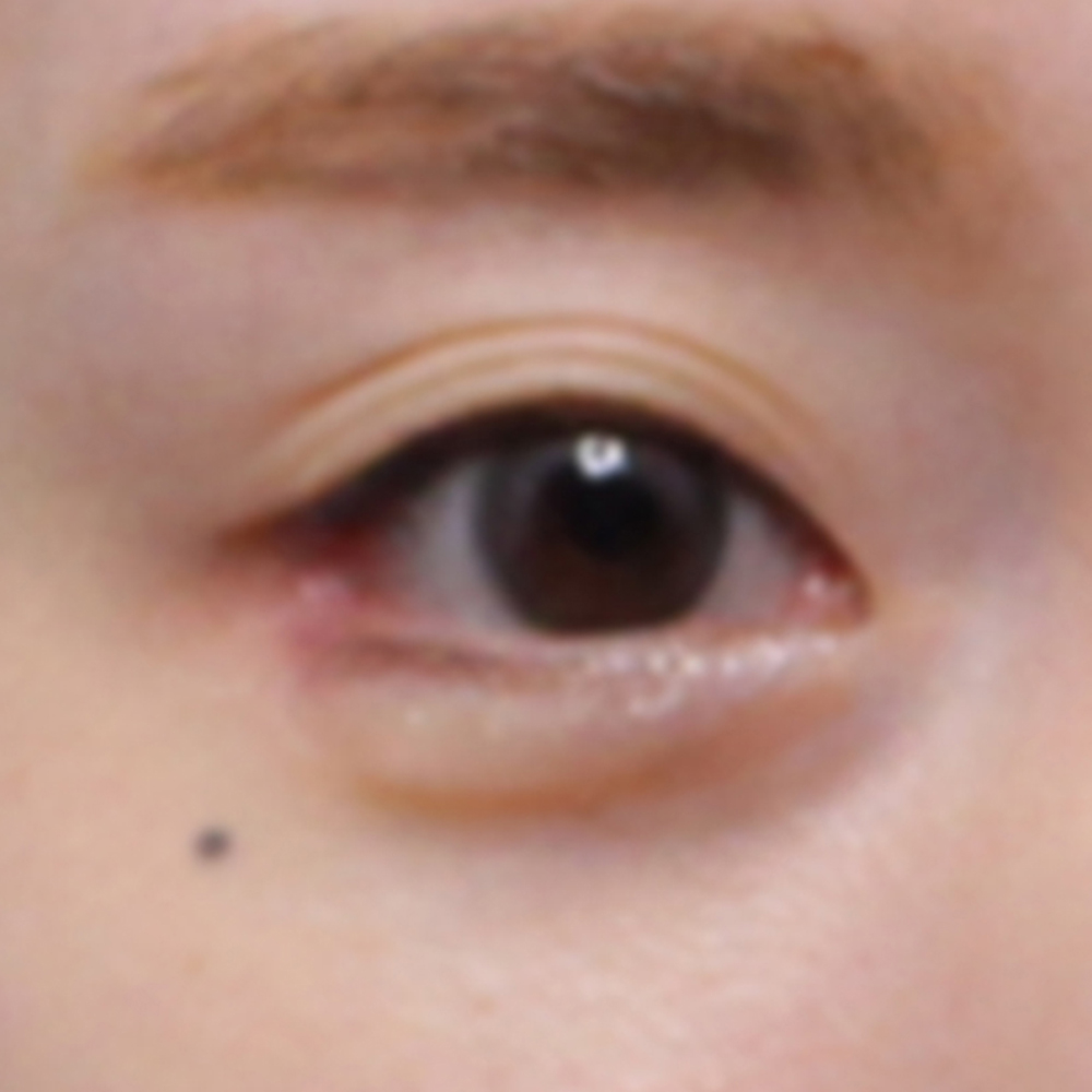 사진을 확대해서 보면, 꺼짐이 개선되면서 눈두덩이의 곡선이 매끄러워지고, 눈 위의 음영이 줄어들어 인상이 훨씬 밝아졌죠.