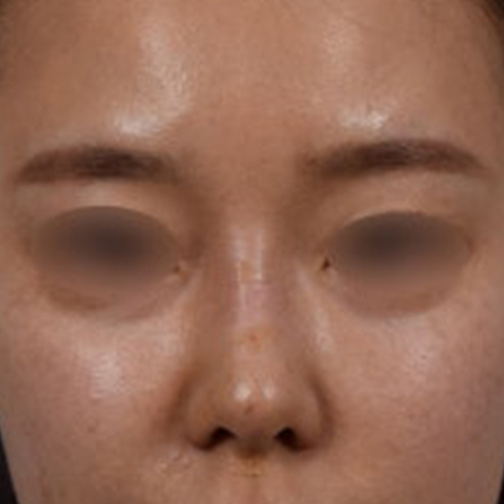 시술 전에는 콧대가 양 옆으로 확산되어, 얼굴 중심이 뭉뚝하고 평면적으로 보였습니다.