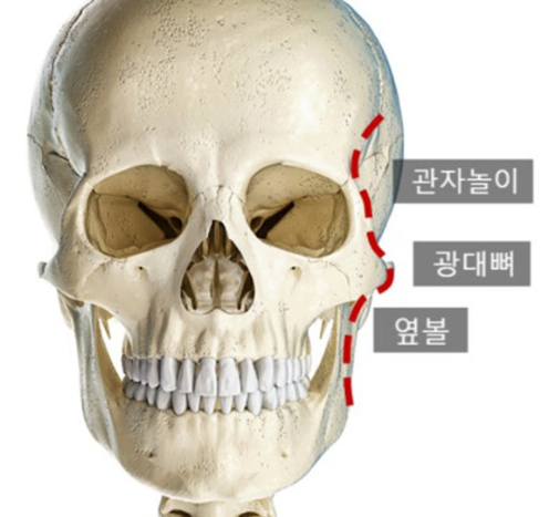 사람의 두개골 구조상 광대가 돌출되어 있고 옆볼이 상대적으로 들어가 보이는 것은 흔한 생리적 특징이거든요.