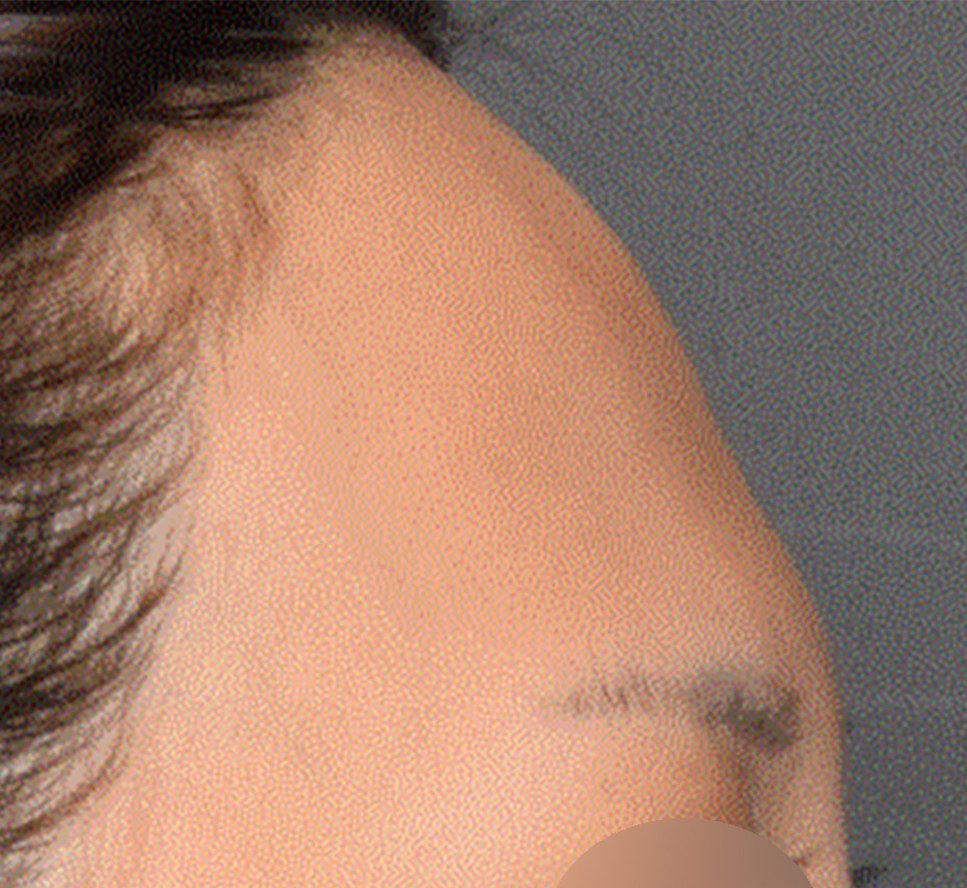 시술 전에는 이마 상부부터 하부까지 울퉁불퉁하게 함몰된 모습을 보여주고 있지만, 시술 후에는 이마 라인이 한층 매끄럽게 변화된 모습을 확인하실 수 있습니다.