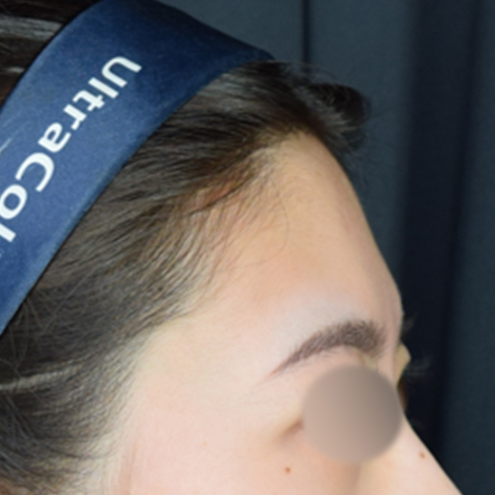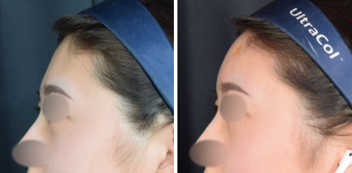 이번 환자분은 이마 전체가 아래로 경사진 형태였고, 특히 이마 중심부가 깊게 꺼져 입체감이 부족한 형태였습니다.
