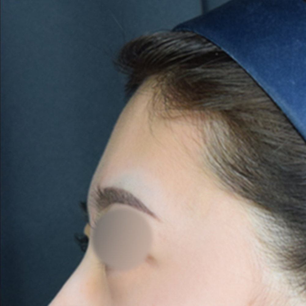 직후임에도 불구하고, 이마의 경사 라인이 훨씬 완만해지고 중심부 함몰 부위가 채워지면서 입체감이 눈에 띄게 좋아진 모습입니다.