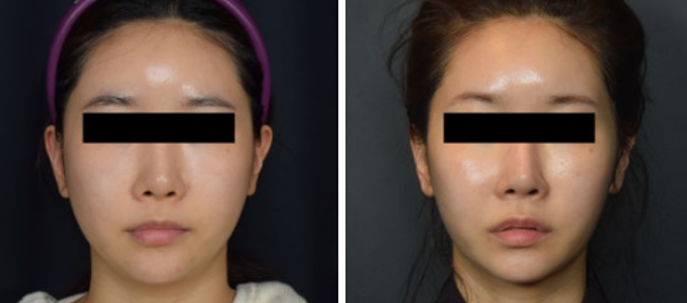 전후 사진을 보시면 가장 먼저 눈에 띄는 변화는 턱선의 선명도입니다.