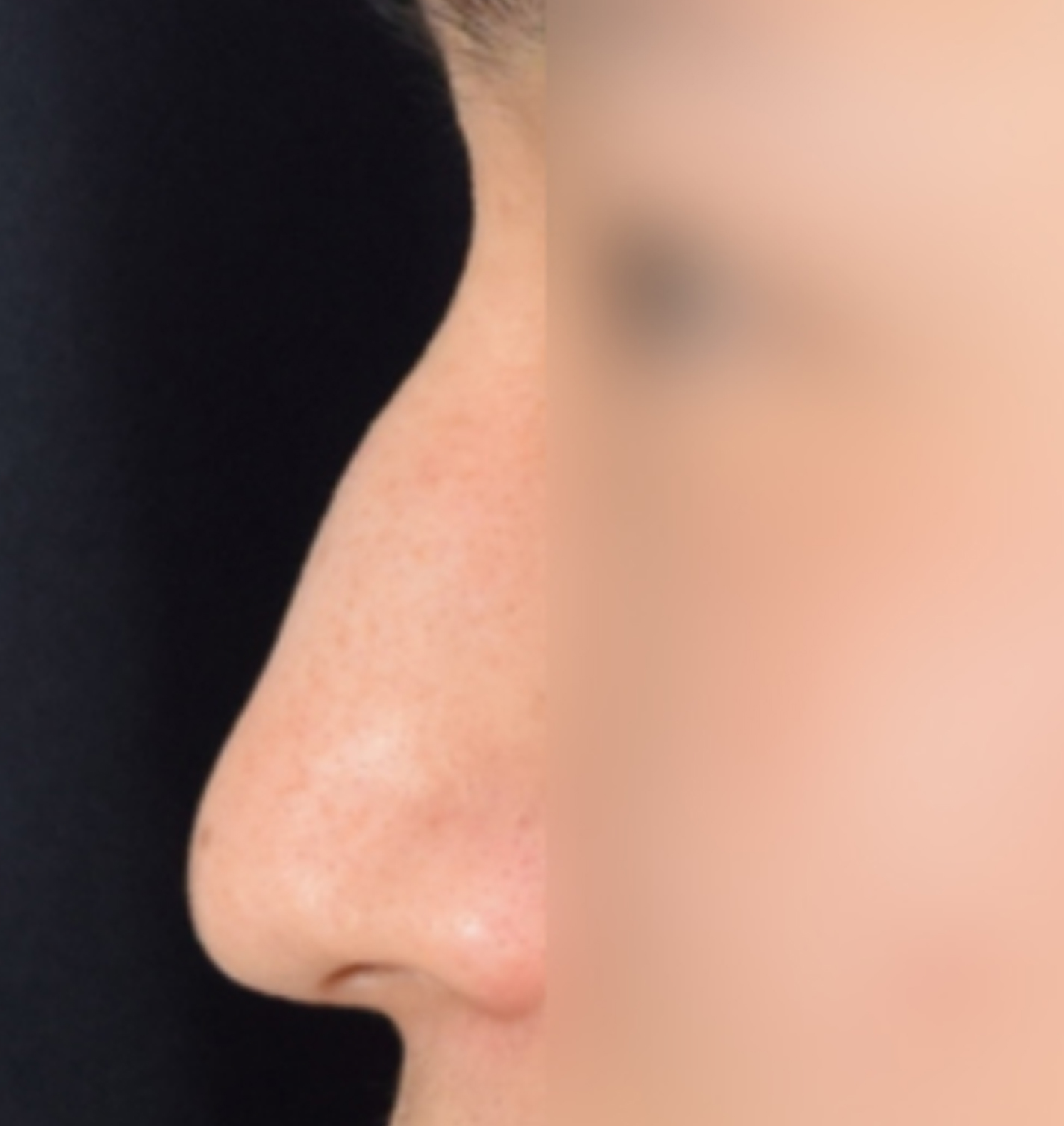 시술 후에는 콧등의 굴곡이 부드럽게 이어지면서 전체적인 코 라인이 정리되고, 옆모습에서는 단차가 거의 보이지 않는 형태로 바뀌었습니다.