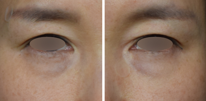 전후를 비교해보면 차이가 더욱 명확합니다. 몽고주름 부위 흉터가 완만해졌을 뿐 아니라, 눈밑 잔주름과 피부 텍스처 또한 함께 개선되는 변화를 보실 수 있습니다.