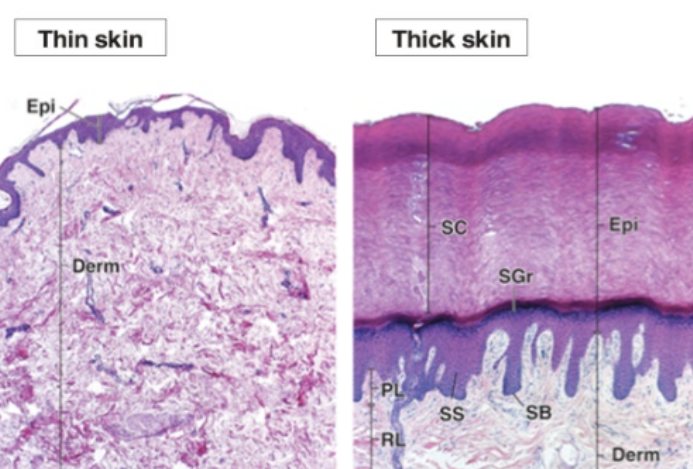 피부가 얇고 두껍다는 것은 단순히 표피층만의 차이를 의미하지 않습니다.