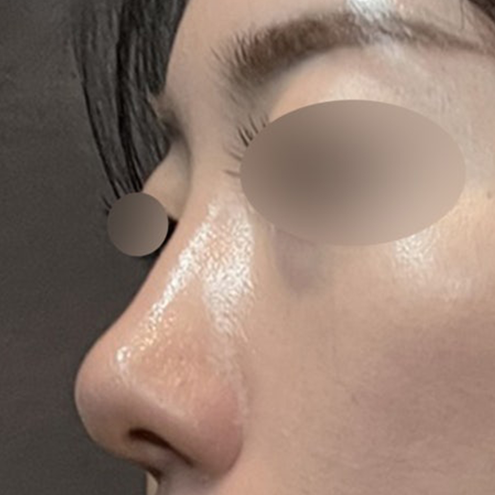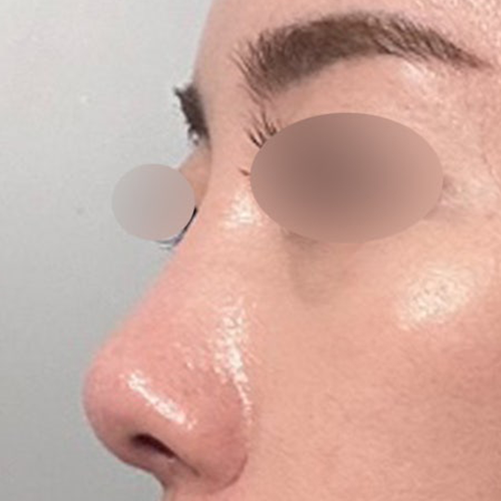 측면에서 확인해보면, 콧대 자체가 아주 낮은 편은 아니지만 콧대에서 코끝으로 이어지는 라인이 매끄럽지 못한 상태였고, 이로 인해 코의 입체감이 충분히 살아나지 못한 모습이었습니다.