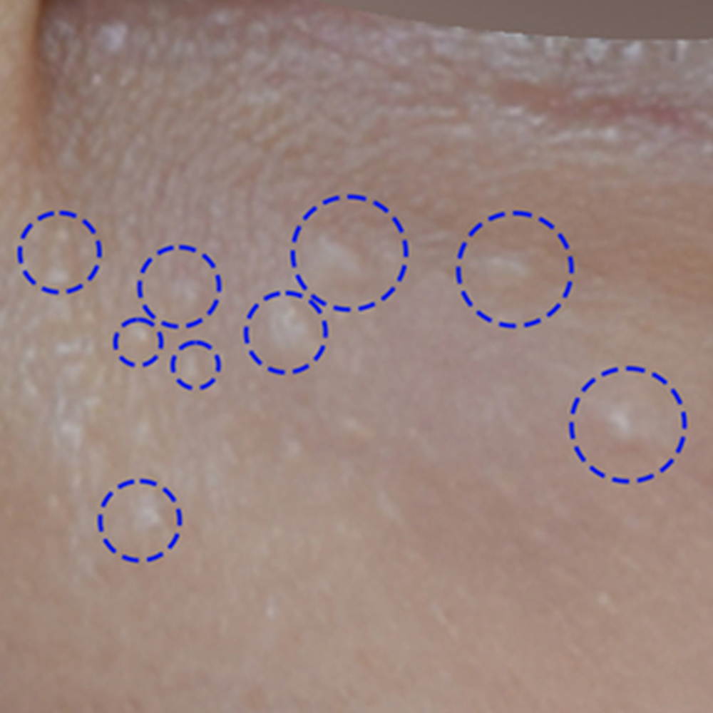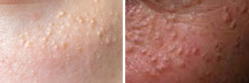 내원 당시 상태를 보면 눈가 주변으로 좁쌀 형태의 돌기들이 관찰되었습니다.