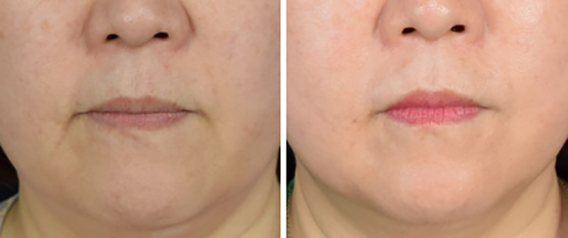 당시 환자분께서는 안면부 볼살이 전체적으로 아래로 이동하면서 입가 주변에 깊은 경계가 생긴 상태였습니다. 흔히 말하는 불독살이 아주 도드라져 보였죠.